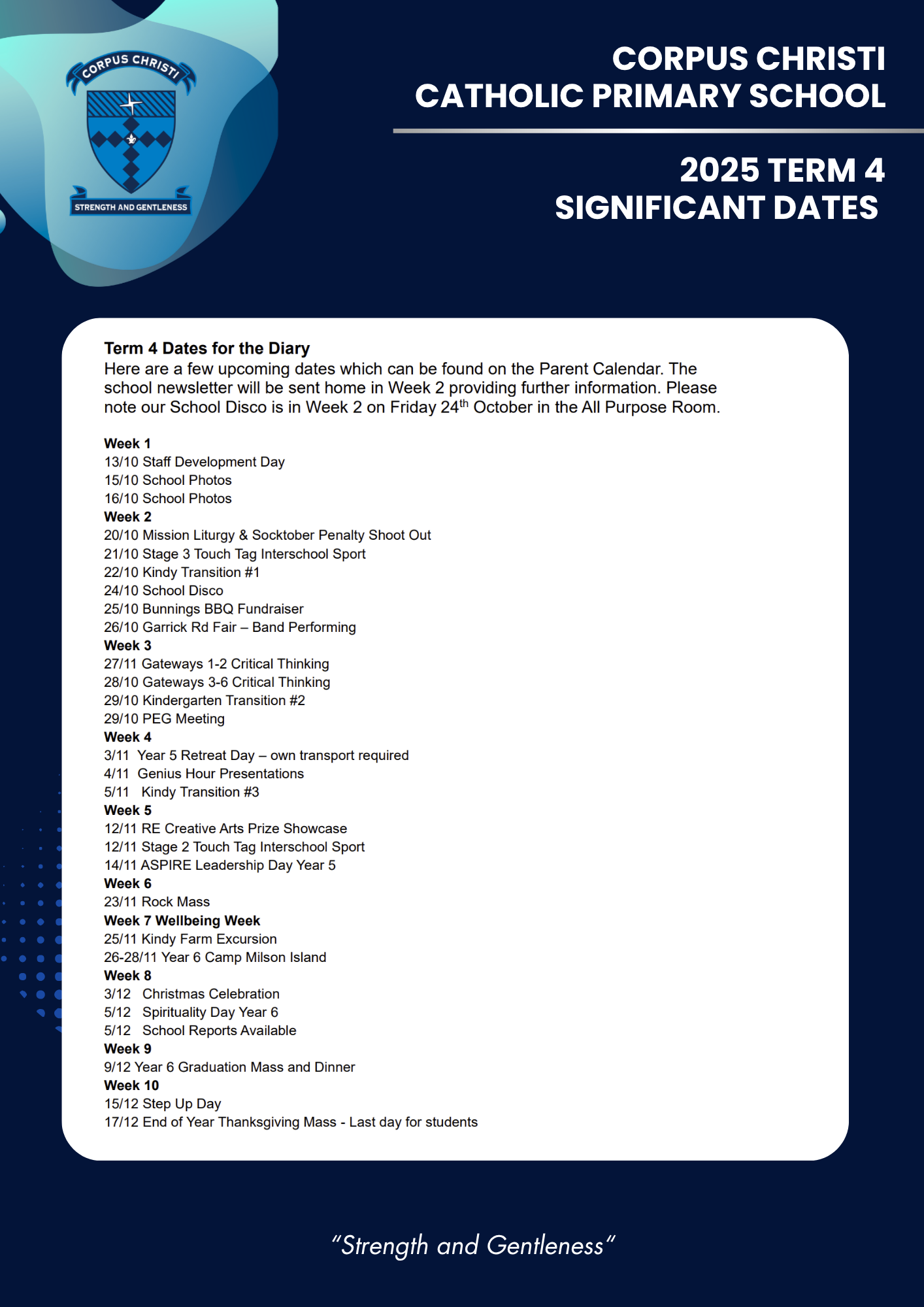 Significant Dates Term 4 2025